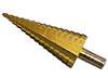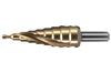 HSS TiN trappenboren uitgevoerd in spiraalvorm voor snel boren en met titanium coating voor een lange levensduur. Uitermate geschikt voor: plaatstaal, non-ferro metalen en kunststoffen.Geschikt voor: gelegeerd staal en gietstaal.Niet geschikt voor slagschroevendraaiers. Trappen: 4, 6, 8, 10, 12, 14, 16, 18, 20, 22, 24, 26, 28, 30, 32 mm. Schacht met drie afgronde kanten voor betere grip in de boorkop.