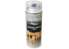 Vernis synthetic. Blanke lak voor een beschermende afwerking over de decoratieve verf, lak of beits en voor elke gewenste ondergrond, zoals hout, metaal en kunststof. Deze synthetische, oplosmiddel houdende alkydlak kan gebruikt worden over o.a. de Colorworks lakken Colorspray, Fluorspray en Metallicspray. UV-bestendig.