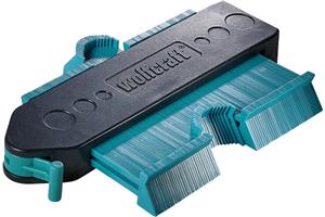 Handig hulpmiddel voor het nauwkeurig overnemen en aftekenen van onregelmatige vormen en profielen! De aftaster kan worden gebruikt bij het leggen van bijvoorbeeld laminaat rond een kozijn of een leiding.