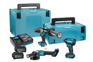 Set bestaat uit drie machines in een M-box: DF001G: Zeer sterke machine voor zware boor-/schroefklussen met grotere diameters. TD002G: Sterke en zeer geavanceerde slagschroevendraaier met 10 instellingen. GA005G: Accu haakseslijper voor intensief gebruik voorzien van rem.
