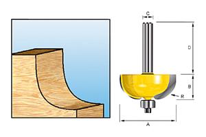 Hardmetalen holprofielfrees met kogellager. Geschikt voor het aanbrengen van decoraties aan randen van massief hout en lijmhoudende houtsoorten en kunststoffen.