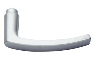 Aluminium, uni geslepen F1.Zwaar blok model.Set bestaande uit 2 deurkrukken en geboorde vierkante krukstift, toepasbaar op deuren tot deurdikte 60 mm.Verstelbaar d.m.v. puntschroef (boort zich in krukstift).