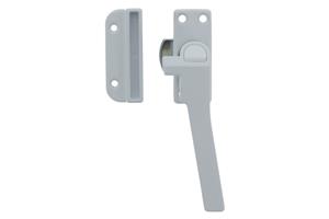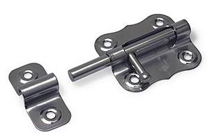 Plaatgrendel verzinkt. Vierkante, gegolfde grondplaat. Blank gedraaide ronde grendel met schuifknop. Compleet met sluitbeugel. Afmeting lengte x breedte.