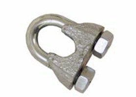 Beugel en moeren verzinkt. Lichaam gietijzer verzinkt. Voor staalkabel en staaldraad.