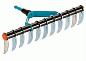 Eénzijdig getande hark met speciaal gevormde en verzinkte messen en aansluiting voor Gardena combisystem-stelen. Reinigt de grasmat van onkruid en mos. Ook te gebruiken voor het fijner maken van aarde.