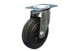 Op plaat, zwenkend op dubbele kogelkrans, en voorzien van stofafdichting plaat en vork: verzinkt. Kunststof velg voorzien van rubberen band en rollager. Welk draagvermogen per wiel is er nodig (voorbeeld 4-wielige wagen)? Tel het eigen gewicht van uw wagen en het gewenste laadvermogen bij elkaar op. Het totaal deelt u door 3. Dit is nodig omdat door oneffenheden in de vloer of een ongelijke verdeling van de last, het gewicht vaak door 3 van de 4 wielen moet worden gedragen.
